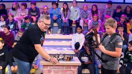 Hier spielt die Musik! Gemeinsam mit Lukas, Pauli und Flo von der Band "Deine Freunde" tauchen Elton und Piet heute in die bunte Welt von Klängen und Konzerten ein. Dabei erfahren sie unter anderem, warum In-Ear-Kopfhörer für KünstlerInnen bei ihren Auftritten so wichtig sind. Fürs Musikmachen darf natürlich eine Sache nicht fehlen: die Instrumente! Aber wie entstehen eigentlich Töne? Reporterkind Raphael bekommt nicht nur einen Einblick in die Proben eines Akkordeon-Orchesters, sondern auch in das Innere des Handzuginstruments. Mit Pauken und Trompeten geht es weiter. Die Rateteams aus Bayern, Mecklenburg-Vorpommern und Hessen müssen herausfinden, was Dirigierende eines Orchesters mit ihrer linken Hand anzeigen und wie Musikinstrumente aus Eis funktionieren. "1, 2 oder 3", die Quizshow für die ganze Familie, vermittelt Wissen auf unterhaltsame und spielerische Weise. Helle Köpfe sind gefragt und auch flinke Beine. Denn die Rateteams geben ihre Antworten durch das Springen auf eines der Antwortfelder. Bei "1, 2 oder 3" können die Fans zu Hause über HbbTV live mitspielen, und bereits ausgestrahlte Sendungen lassen sich auch online über 12oder3.de oder die ZDFtivi-App beim Videoquiz nachspielen. Wer noch nicht genug hat, kann im Zockerquiz quizzen ohne Ende. Für Vorschulkinder gibt es auf zdftivi.de und in der ZDFtivi-App das Angebot "Moin Piet - Quiz mit Quatsch".