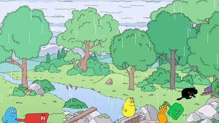 Es regnet. Weil die Barbababies nicht nach draußen gehen können um zu spielen, langweilen sie sich. / Barbahelle hat eine Maschine konstruiert, die dafür da ist, um die Laute von Tieren zu übersetzen.