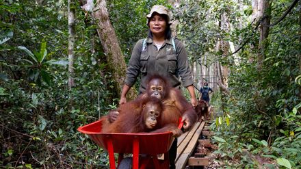 Ursulae ist schwer gefordert: Die Mitarbeiterin des Waldkindergartens im indonesischen Nyaru Menteng ist mit zwei ihrer Schützlinge unterwegs, um ihnen das Leben im Regenwald beizubringen. Selfie und Nia sind Orang-Utan-Waisen, die von der Nichtregierungsorganisation Borneo Orangutan Survival Foundation (BOSF) krank und unterernährt aus Privathaushalten gerettet wurden. Die Organisation bemüht sich seit Jahren darum, Waisen wie diese beiden nach der Rettung auf ein Leben in der Natur vorzubereiten. Eine Arbeit, die Jahre dauert - denn nach uns Menschen pflegen Orang-Utans die längste Bindung zu ihren Nachkommen: Bis zu neun Jahre verbringen die Mütter mit ihrem Nachwuchs, bevor sie diesen in die Selbstständigkeit entlassen. In dieser Zeit bringen sie ihren Jungen alles bei, was sie wissen müssen, um zu überleben. Eine Aufgabe, die nun die Mitarbeitenden der Auffangstation übernehmen. Um jedem Alter gerecht zu werden, ist die Aufzucht der jungen Menschenaffen in mehrere Teile gegliedert - in einen Kindergarten, eine Schule und einen anschließenden mehrjährigen Aufenthalt auf sogenannten Vorauswilderungsinseln. Erst wenn sie all diese Stationen durchlaufen haben, sind die jungen Tiere bereit, in ihre ursprüngliche Heimat, die Wildnis, zurückzukehren. Seit Bestehen der Auffangstation in Nyaru Menteng erlangten mehr als 800 Orang-Utans ihre uneingeschränkte Freiheit in einem der sicheren Waldschutzgebiete auf Borneo. Auch Selfie und Nia sollen eines Tages dorthin zurückgebracht werden. Und Ursulae wird sie auf diesem langen Weg ein gutes Stück begleiten.