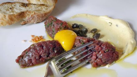 Baris, 31 Jahre, aus dem Rhein-Main-Gebiet, serviert heute ein Drei-Gänge-Menü. Motto: Kulinarische Kunst trifft auf sinnlichen Genuss Vorspeise: Zweierlei vom Bison-Tatar - Klassisch und als Pani Puri mit Trüffelmayonnaise Hauptspeise: Filet vom Rind in Rotweinreduktion / Fondant-Kartoffeln / Orangenmöhren / Spargel / Erbsenpüree Nachspeise: Lemon Posset mit Amalfi-Zitronen-Sorbet
