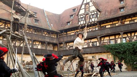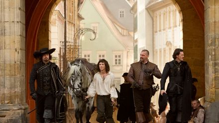 Den unge D'Artagnan ankommer til Paris i håb om at blive optaget i kongens musketergarde. Hans entusiasme giver den metaltrætte musketer-trio Athos, Porthos og Aramis ny kampgejst, og sammen drager den eventyrlystne kvartet ud på en farlig mission for at redde ikke bare den franske trone, men hele Europa. S. Anderson.
