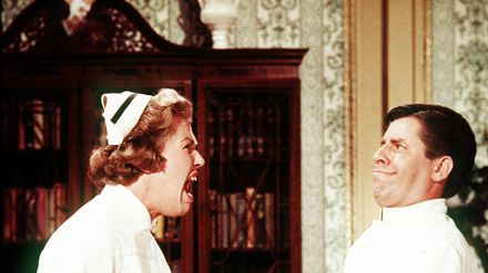 Jerry Lewis (Jerome Littlefield), Glenda Farrell (Dr Jean Howard), Susan Oliver (Susan Andrews), Karen Sharpe (Julie Blair), Kathleen Freeman (Maggie Higgins), Everett Sloane (Herr Tuffington), Del Moore (Dr Davenport), Alice Pearce (Frau Fuzzibee), Milton Frome (Board Member), John Macchia (Orderly)