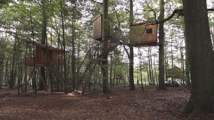 Pete Nelson besucht in Deutschland seinen ehemaligen Schützling Christopher Richter. Der Ex-Lehrling ist mittlerweile ein gestandener Baumhaus-Profi. In Uslar-Schönhagen haben Christopher und sein Team ein Hotel in den Blätterwald gezimmert. Dort können die Gäste in individuell gestalteten Unterkünften eine unvergessliche Nacht in den Baumwipfeln erleben. Das muss Pete sich unbedingt ansehen. In Bassum trifft der US-Amerikaner einen weiteren Meister des Fachs: Andreas Wenning entwirft moderne Erlebnisräume für Kinder und Erwachsene. Der erfahrene Architekt setzt bei der Baumhaus-Konstruktion auf innovative Technik.