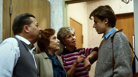 Rüdiger und seine Frau Uschi, die kurz vor der Niederkunft steht, haben es satt, schon frühmorgens von Uschis Mutter mit einem Vitamingetränk geweckt zu werden. Sie mieten sich in einer nahen Pension ein, um dort ungestört bis zur Geburt ihres Kindes noch ein paar ruhige Tage zu verbringen. In der Zwischenzeit laufen die Aktivitäten bei der Großfamilie Wichert auf Hochtouren: Oma Käthe hat in Eilauftrag ein Messingschild fertigen lassen mit der Aufschrift "Rüdiger Wichert von Strelenau". Alle Kunden des Getränkevertriebs sollen auf den ersten Blick den "verbesserten" Lebensstandard erkennen. Die Wicherts wollen, dass auch die junge Generation noch Platz in ihrem Haus findet. Andy muss sein Quartier im Keller beziehen. Große Ratlosigkeit herrscht allerdings, als die beiden Familien feststellen, dass das "junge Glück" nicht auffindbar ist. Als sie schließlich das Schreien des Babys am Telefon vernehmen, ist die Freude riesengroß.