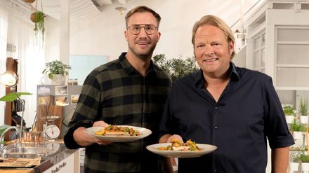 Sören Anders serviert Frikadellen mal "Anders": Räucherfisch und Kartoffeln sind die Basis, dazu gibt's einen leichten Gurkensalat. Björn Freitag überrascht mit einem vegetarischen Gericht: Auberginentatar mit viel frischen Kräutern und selbstgemachtem Knäckebrot - eine einfache, aber moderne und mutige Fusion. Zum Abschluss gibt es ein Knäckebrot "Björn" mit Räucherforelle und Aprikosen-Tomatensalat.