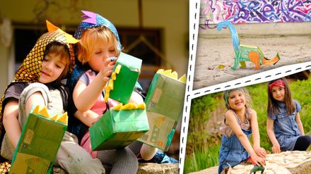 Wir basteln Dino-Füße, Steckdinos und machen Dino-Abdrücke: Dinos sind spannend! Clara und Nele basteln Dinofüße aus Pappboxen. Dann basteln Tammo und Mira einen Steckdino und Hanna und Jara machen Dinoabdrücke. In der Poststation sind Steckfiguren und Bilder zu sehen, die Zuschauerkinder an ENE MENE BU geschickt haben. Mach mit und bastle eine Steckfigur für die ENE MENE BU Poststation!
