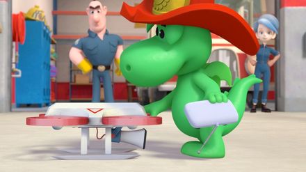 Grisu und der Baby-Kumpel: Selbstverständlich stimmt Grisu dem Einsatz als Seelöwenbabysitter zu - ausgestattet mit einer Flasche Milch mit Fischgeschmack und viel Feuerwehrpower. Was soll da schon schiefgehen? Zumindest in den ersten Sekunden von Grisus neuer Mission geht nichts schief. Aber dann ist plötzlich das Seelöwenbaby verschwunden und eine wilde und sehr lange Verfolgungsjagd durch ganz Drachenstadt beginnt. Die fliegende Vogelscheuche: Grisus Auftrag hört sich einfach an: Er soll für Bauer Gelleck mit einer ferngesteuerten Drohne einen gefräßigen Vogel verscheuchen. Aber der Vogel macht es dem angehenden Feuerwehrmann schwer. Selbst von der lauten Sirene der Drohne lässt sich der Vogel nicht vertreiben. Drachenvater Fumé schlägt wie immer einen Feuerstrahl vor, um den Vogel zu verscheuchen. Aber bevor Grisu Feuer spuckt, lässt er sich etwas anderes einfallen.