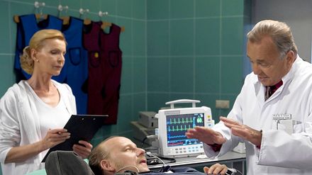 Peter Sänger ist ein Pfarrer und vielbeschäftigt. Auf dem Weg von Termin zu Termin stürzt er mit dem Fahrrad und wird mit einem Armbruch in die Sachsenklinik eingeliefert. Nach einer gelungenen Operation beschließen die Ärzte, Sänger zu dem herzkranken Dietmar Bloch aufs Zimmer zu legen. Sie hoffen, dass der Geistliche, der viel Optimismus ausstrahlt, guten Einfluss auf Bloch haben könnte.