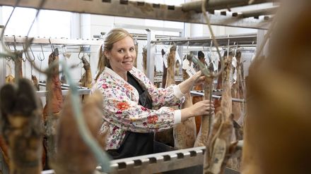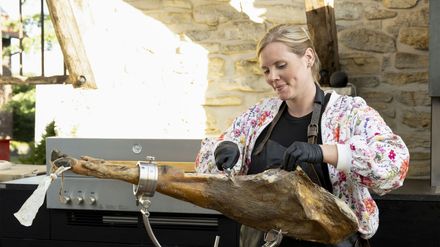 "Land & lecker" - kulinarische Schätze deutschlandweit - die erfolgreiche Gemeinschaftsproduktion von BR, SWR und WDR geht weiter. Sechs Landfrauen machen sich auf eine kulinarische Reise quer durch Deutschland - von der Eifel bis nach Oberbayern. Gegenseitig besuchen sich die Teilnehmerinnen, bieten Einblicke in den Hofalltag und präsentieren ihre regionalen Spezialitäten. Am Ende vergeben sie Punkte und küren eine Siegerin. Wer kocht das leckerste Landmenü aus seinem kulinarischen Schatz? Die erste Gastgeberin lädt ins Münsterland ein. "Aus den Pumps in die Gummistiefel", so beschreibt Annika Ahlers-Vincke ihren Werdegang. Der Bauernhof ihrer Großeltern weckte im Stadtkind Annika das Interesse am Landleben. Nach der Ausbildung zur Landwirtin wurde sie zu einer der ersten Influencerinnen der Landwirtschaft. In Everswinkel führt sie gemeinsam mit ihrem Mann Christian Vincke dessen elterlichen Betrieb mit rund 400 Ibérico-Schweinen, die eigentlich in Spanien heimisch sind. Das Fleisch der schwarzen Tiere gilt wegen der Fetteinlagerung im Fleisch als Delikatesse. In Spanien hat die 30-Jährige eine Fortbildung als "Cortadora" absolviert, um zu lernen, wie man den Schinken auf klassische spanische Art schneidet. In ihrem Menü spielen die Ibéricos die kulinarische Hauptrolle: Als Gruß aus der Küche gibt es hauchdünn geschnittenen Schinken, Schmalz und Chorizo mit Sauerteigbrot. Zum Hauptgang flambiert sie Presa, ein besonderes Nackenstück, und serviert es mit Kartoffelstampf, Rote Bete-Carpaccio und Orangen-Möhren. Das Dessert rundet das Menü ab: Schoko-Küchlein mit karamellisiertem Ibérico-Speck. Weitere Teilnehmerinnen: Im Hochschwarzwald arbeitet Jessica Joos im Vater-Tochter-Team und sie produzieren aus eigenem Obst Edelbrände. Gisela Elfinger züchtet in Oberbayern Walliser Schwarznasenschafe und betreut in der Sozialen Landwirtschaft Alzheimerpatienten. Victoria Görlich aus Ostwestfalen hat ein Start-up gegründet, bei dem sich alles um Hafer dreht.