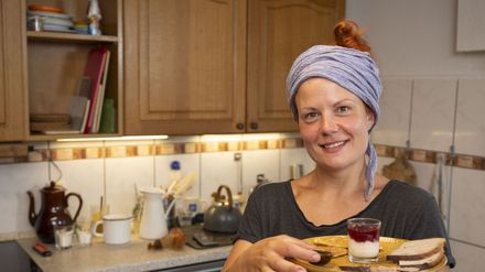 Um Regenwasser auf abschüssigen Wiesen im Boden zu halten und den Tieren im Sommer Schatten zu bieten, pflanzten sie Baumreihen aus Pappeln, Obst- und Nussbäumen. Ein Projekt, das Geduld fordert. Langfristig soll das vor den Auswirkungen des Klimawandels schützen. Mitten auf der Kuhweide serviert Rahel eine typisch Bergische Kaffeetafel.