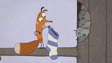 Volles Nest: Das Eichhörnchen ist glücklich. Es hat seine Baumhöhle mit allerlei Fundsachen ausgekleidet und winterfest gemacht. Ein Socken von Lena war Gold wert, genauso wie ein Büschel Wolle vom Schaf. Mollig warm hat es das Eichhörnchen jetzt. Der Winter kann kommen. Dann setzt Regen ein, so schlimm, dass viele Behausungen von Tieren unter Wasser stehen. Das Eichhörnchen kann die Not der Tiere nicht ertragen. Es gewährt ihnen Unterschlupf in seiner Höhle... Köstliche Socken: Die Motten haben Löcher in Lenas Lieblingssocken gefressen. Um den Schaden wieder gut zu machen, wollen sie frische Wolle ins Haus transportieren, damit die Spinne die Löcher stopfen kann. Das Schaf hat glücklicherweise nichts dagegen, ein paar Büschel seiner Wolle abzugeben. Die Motten fliegen mit reicher Beute zum Haus zurück. Aber verflixt, was ist das? Im Haus angekommen, ist die ganze Wolle schon wieder alle. Was ist da nur passiert?