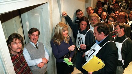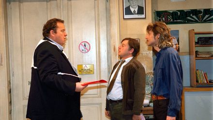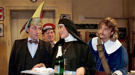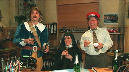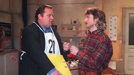 Weber kommt mit einem Päckchen ins Büro, einem Geschenk für alle. Sogar Claus kann seine Neugier kaum noch zügeln. Das Präsent stellt sich als Dart-Spiel heraus. Weber ruft Büromeisterschaften aus, wobei er sich selbst als Sieger sieht. Doch Claus sorgt dafür, dass selbst die Knackal, die versucht, fürs Golfspiel zu trainieren, ins Schwarze trifft. Webers Pfeile prallen immer von der Scheibe ab.