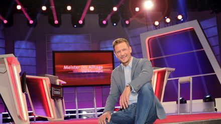 Moderator Florian Weber stellt in dem SWR-Wissensquiz "Meister des Alltags" die Alltagstauglichkeit seiner prominenten Kandidaten auf die Probe. "Verstehen Sie Spaß?"-Moderator Guido Cantz und Schauspielerin Alice Hoffmann treten gegen Comedian Bodo Bach und Moderatorin Enie van de Meiklokjes an.