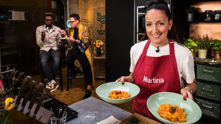 Promis, Nervenkitzel und Genuss. Im "Mini Chuchi, dini Chuchi - Promi-Spezial" kochen Isabella Schmid, Martina Moser, Marc Sway und Charles Nguela um den Sieg. Die Jury - Annemarie Wildeisen und Tochter Florina Manz - urteilt streng nach Geschmack und vergibt 10'000 Franken für einen guten Zweck.