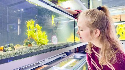 Zwerggarnelen: Nina besucht Lucas, der Zwerggarnelen in vielen verschiedenen Farben züchtet. Die kleinen Krebstiere werden nur wenige Zentimeter groß und sind Haustiere mit geringem Platzbedarf. Nina richtet selbst ein Aquarium für die Garnelen ein und erfährt, worauf es bei der Haltung der flinken Tierchen ankommt. Beim Beobachten merkt sie schnell: Zwerggarnelen sind spannende Haustiere und alles andere als langweilig.