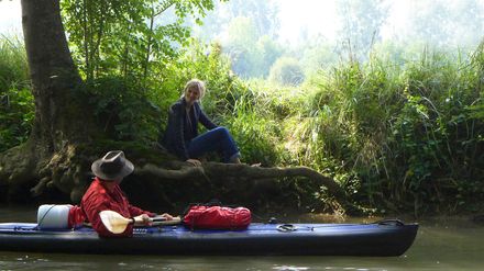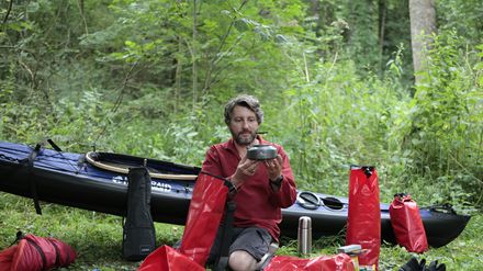 Michel, in den 50ern, verheiratet, die Kinder aus dem Haus, Nine-to-five-Job, steckt in seiner täglichen Routine fest. Wenn er nach der Arbeit auf sein Motorrad steigt, träumt er von einem anderen Leben. Wie gerne würde er wie sein Held, der Luftpost-Pionier Jean Mermoz, in einer Propellermaschine durch den Abendhimmel schweben. Eines Tages stößt Michel durch Zufall auf das Foto eines Kajaks - und ist begeistert von der formvollendeten Schönheit und Eleganz des Objekts. Es ist Liebe auf den ersten Blick! Ein Klick - und das Boot zum selbst Zusammenbauen ist seins. Einige Tage gelingt es Michel, den Kauf vor seiner Frau Rachelle zu verheimlichen. Voller Hingabe setzt er auf der Dachterrasse sein Kajak Stück für Stück zusammen und häuft immer mehr Expeditionsausrüstung an. Ganze Nachmittage verbringt er in seinem halbfertigen Gefährt und träumt sich davon. Schließlich entdeckt Rachelle das Ausrüstungslager, setzt den Trockenübungen ein Ende und ihren Mann an einem Fluss aus, damit er endlich in die Gänge und aufs Wasser kommt. Dass Michels Auszeit ihr gemeinsames Leben komplett auf den Kopf stellen könnte, ahnt Rachelle. Und wirklich: Schon bei seiner ersten Rast trifft Michel im Ausflugslokal mit der schönen Laëtitia auf eine ländliche, exzentrische Boheme. Er taucht ein in eine exotische Welt außerhalb von Raum und Zeit, die geprägt ist von Unbeschwertheit, Kirschen, Sinnlichkeit und eisgekühltem Absinth ...