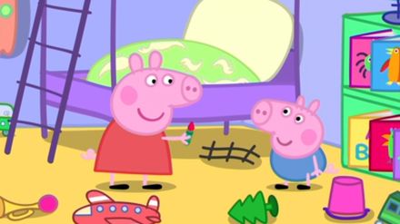 Mama Wutz backt heute einen Apfelkuchen. Während Familie Wutz wartet bis er fertig ist, schlägt Papa Wutz vor ein Suchspiel zu spielen. Peppa und Schorsch haben Spaß daran, etwas zum Schreiben, etwas Quadratisches oder etwas Quiekendes zu finden. Zum Schluss müssen sie noch etwas Blaues finden. Peppa und Schorsch können nichts finden, bis Schorsch einen Blick in den Spiegel wirft - seine Kleidung ist ja blau!
