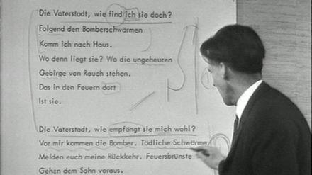 Der Autor, Kritiker und Rhetorikprofessor Walter Jens war Mitglied der Gruppe 47. In dieser Sendung aus dem Jahr 1968 beschäftigte er sich mit dem Gedicht "Rückkehr" von Bertolt Brecht. Ein scheinbar simples Gedicht aus einfachen, klar verständlichen Wörtern, in Wirklichkeit aber komplex und aus mehreren Ebenen bestehend. Die große Kunst von Walter Jens bestand darin, diese Komplexität zuerst aufzudecken und sie verständlich zu machen.