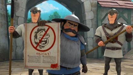 Die Rückkehr des Königs: Prinz John will verhindern, dass sein Bruder an einer Zeremonie teilnimmt, die ihn als König bestätigt, und schickt Edward, um Richard auf seinem Morgenausritt in eine Falle zu locken. Während Marian, Little John und Tuck im Schloss auf komische Weise versuchen, Zeit zu gewinnen und das Ritual zu vollenden, eilt Robin los, um Richard zu retten. Schaffen sie es nicht bis zwölf Uhr, muss Richard abdanken - und Prinz John erhält den Thron. Lachen verboten: Robins neuester Streich bringt das Volk zum Lachen - doch Prinz John platzt der Kragen: Niemand darf mehr lachen. Nicht einmal Lord Gudfred und sein Sohn Kevin, die im Schloss Geburtstag feiern. Als Kevin wegen illegalen Lachens verhaftet und Gudfred hinausgeworfen wird, ist das Maß voll. Kann Robin, verkleidet als Akrobat, das absurde Gesetz kippen und endlich wieder für Lachen sorgen?