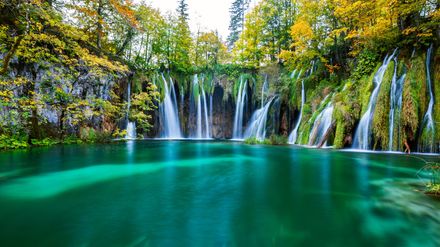 Inmitten von Karstbergen reihen sich in Kroatien 16 kleinere und größere Seen aneinander, verbunden durch zahllose Kaskaden und unterirdische Wasserläufe. Die Dokumentation aus der Reihe "Schätze der Welt - Erbe der Menschheit" führt zum Nationalpark Plitvicer Seen, dessen Wälder drei Viertel seiner Fläche einnehmen und bedrohten Pflanzen Raum zum Überleben bieten. Ein grandioses Schauspiel der Natur: Blaugrünes, kristallklares Wasser sucht seine Wege, fällt über Barrieren von einem Seebecken in das nächste und überwindet so einen Höhenunterschied von 133 Metern. "Am Anfang habe ich gar nicht verstanden, wie sehr alles in Bewegung ist", so Ranger Ante Bionda. "Aber dann habe ich ein Gefühl dafür entwickelt, wie sich die Plitvicer Seen verändern und dabei immer schöner werden." Saubere Gewässer sowie das warme, feuchte Klima schaffen die Rahmenbedingungen für ein einzigartiges Zusammenspiel von Wasser, Luft, Gestein und Vegetation. Bakterien und Algen begünstigen die Ablagerung von Kalksinter, von dem Moose, Wasserpflanzen und in die Seen gestürzte Bäume überzogen werden. Sie versteinern und formen natürliche Barrieren, die jährlich bis zu drei Zentimeter wachsen. Starke Regenfälle bringen neue Veränderungen: Alte Dämme stürzen ein, neue entstehen. Höhepunkte innerhalb dieser wechselnden Szenarien sind mächtige Wasserfälle. Im unteren Bereich der Plitvicer Seen hat sich das Wasser tief in das Kalkgestein gegraben und einen imposanten Canyon geschaffen. 78 Meter tief stürzt das Flüsschen Plitvica die Wände der Schlucht hinunter und vereinigt sich mit den über- und unterirdischen Wasserläufen des kroatischen Seengebiets. Dieses wurde schon 1949 zum Nationalpark erklärt. 30 Jahre später fanden die Plitvicer Seen Aufnahme in die UNESCO-Liste des Weltnaturerbes. Doch auch dieses Naturparadies ist bedroht. In den letzten 30 Jahren gab es nahezu ein Drittel weniger Niederschläge, berichtet Ante Bionda. Dafür sei der Klimawandel verantwortlich.