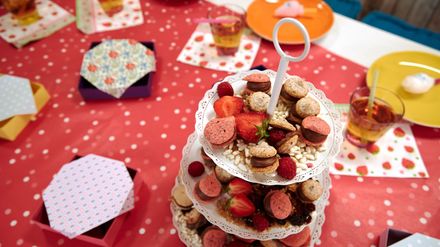 Was ist denn heute mit Nico los? Seine Mama ist sauer, aber Alex und die anderen Kids haben eine super Idee, wie Nico es wieder gut machen kann: Mit einer zuckersüßen Überraschung! Schnell die Bäckermützen aufgesetzt und schon legen die kleinen Zuckerbäcker Ashley und Nico mit den Mandelmakronen los. Amos, Elias, Anna-Sophie und Kathi sorgen am Basteltisch für die passende Verpackung der Süßigkeiten und versuchen sich an der größten Kaugummiblase.