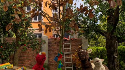 Der Baum ist krank: Es ist Herbst: Elmo, Wolle und Pferd beobachten, wie ein Baum seine verfärbten Blätter abwirft. Sie vermuten, der Baum sei krank. Ernie summt eine Melodie. Als Bert kurz darauf dieselbe Melodie summt, beschwert er sich, Ernie habe ihn angesteckt. Daraufhin denkt Ernie, er habe Bert mit einer Erkältung angesteckt, und beginnt, den vermeintlich kranken Bert zu umsorgen. Grobi erklärt den Beruf des Gärtners und überrascht mit unorthodoxen Tipps zur Pflanzenpflege.