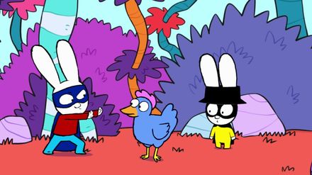 Simon und Franz sind mit ihrer Oma auf dem Bauernhof. Beim Einsammeln der Eier lassen sie versehentlich die Tür offen, und eine Henne entwischt. Im Spiel ist dies eine Mission für die Superhasen. Dort versucht Professor Wolf die anderen Hühner zu stehlen und zu verspeisen. Superhase und Captain Hase stoppen ihn und retten die Hühner. Zurück auf dem Bauernhof, sind auch dort wieder alle Hühner sicher im Stall. Nun müssen die Brüder noch die Eier einsammeln.