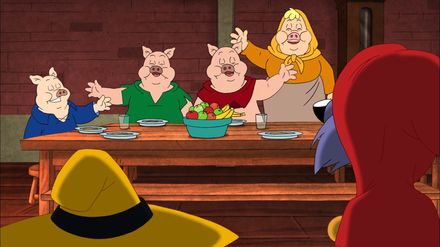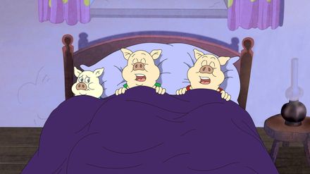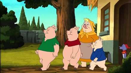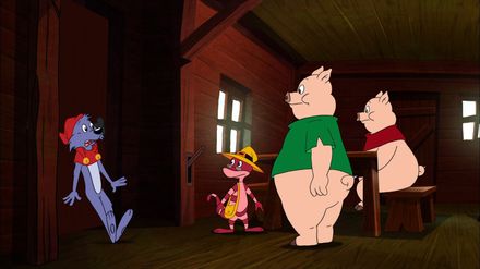 Doc Croc und Yoyo finden, dass es an der Zeit ist, dass die drei kleinen Schweinchen von zu Hause ausziehen, zumal die beiden älteren von ihnen immer nur ans Fressen und an ihren Spaß denken. So baut sich jedes von ihnen ein eigenes Haus: das erste aus Stroh, das zweite aus Holz und das dritte aus Stein. Dass sie den Wolf dabei verärgern, merken sie gar nicht. Der droht, die Häuser wegzupusten.