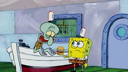 Spongebob lebt mit Hausschnecke Gary in der Unterwasserstadt Bikini Bottom und brät Burger in einem Fast-Food-Laden. Seine besten Freunde sind Seestern Patrick und Eichhörnchen Sandy. SpongeBob kann es gar nicht glauben, als er erfährt, dass Thaddäus noch nie einen Krabbenburger gegessen hat. Jetzt will er ihn mit allen Mitteln dazu bringen, einen zu probieren. Doch der weigert sich hartnäckig.