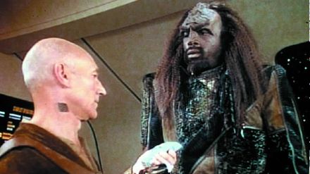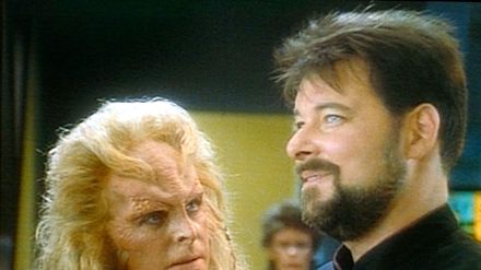 Riker und Picard befinden sich immer noch auf dem Raumschiff des Söldnerführers Baran. Sie haben herausgefunden, dass Baran versucht, eine alte Superwaffe wiederherzustellen. An Bord befindet sich auch eine vulkanische Agentin.