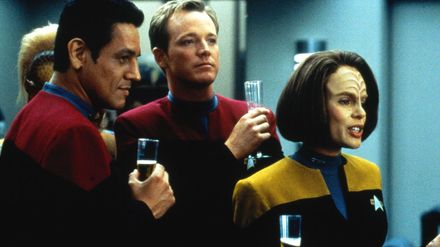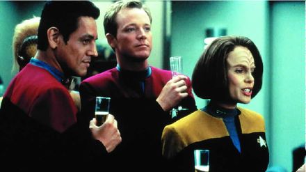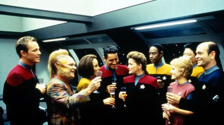 Gemeinsam mit den verfeindeten Maquis ist die Crew der Voyager von einem fremden Wesen 70.000 Lichtjahre von der Erde entfernt in eine unbekannte Milchstraße des Delta Quadranten geschleudert worden. Eine Kalkulation ergibt, dass sie ganze 70 Jahre brauchen werden, um jemals wieder in heimatliche Gefilde zu gelangen. Dafür müssen über weite Strecken unbekannte Universen durchqueren, schwere Kämpfe, Nöte und diverse Abenteuer bestehen. Die kontrahierenden Lager beschließen, sich unter der Führung von Captain Kathryn Janeway (Kate Mulgrew) für die weite Heimreise zu verbünden. - "Raumschiff Voyager" ist die vierte im Star-Trek-Universum angesiedelte Fernsehserie.