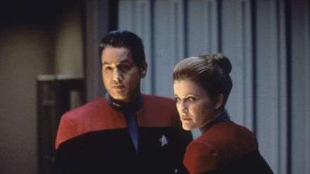 Gemeinsam mit den verfeindeten Maquis ist die Crew der Voyager von einem fremden Wesen 70.000 Lichtjahre von der Erde entfernt in eine unbekannte Milchstraße des Delta Quadranten geschleudert worden. Eine Kalkulation ergibt, dass sie ganze 70 Jahre brauchen werden, um jemals wieder in heimatliche Gefilde zu gelangen. Dafür müssen über weite Strecken unbekannte Universen durchqueren, schwere Kämpfe, Nöte und diverse Abenteuer bestehen. Die kontrahierenden Lager beschließen, sich unter der Führung von Captain Kathryn Janeway (Kate Mulgrew) für die weite Heimreise zu verbünden. - "Raumschiff Voyager" ist die vierte im Star-Trek-Universum angesiedelte Fernsehserie.