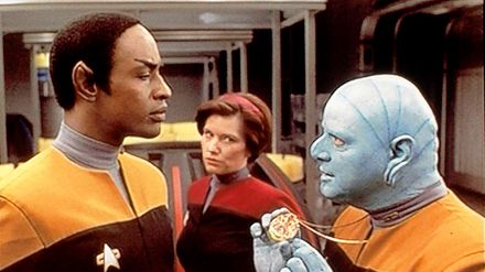 Gemeinsam mit den verfeindeten Maquis ist die Crew der Voyager von einem fremden Wesen 70.000 Lichtjahre von der Erde entfernt in eine unbekannte Milchstraße des Delta Quadranten geschleudert worden. Eine Kalkulation ergibt, dass sie ganze 70 Jahre brauchen werden, um jemals wieder in heimatliche Gefilde zu gelangen. Dafür müssen über weite Strecken unbekannte Universen durchqueren, schwere Kämpfe, Nöte und diverse Abenteuer bestehen. Die kontrahierenden Lager beschließen, sich unter der Führung von Captain Kathryn Janeway (Kate Mulgrew) für die weite Heimreise zu verbünden. - "Raumschiff Voyager" ist die vierte im Star-Trek-Universum angesiedelte Fernsehserie.