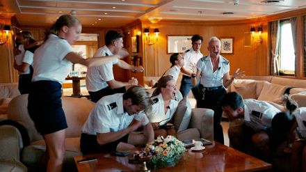 Mit Champagner auf dem Sonnendeck lässt sich's aushalten, darin ist sich die bunte Truppe auf der Luxusyacht einig. Influencerin Yaya und Model Carl bekamen den Trip spendiert, Oligarch Dimitry zahlt aus der Portokasse, Gattin Vera liebt das Drama. Während die Bonzen oben feiern, gibt sich der marxistische Kapitän in der Kabine die Kante. Als ein Sturm und ein Piratenangriff das Schiff zum Kentern bringen, retten sich die Überlebenden auf eine Insel, wo sich die Hackordnung umdreht. Nun bestimmt die philippinische Putzkraft, wo es langgeht...