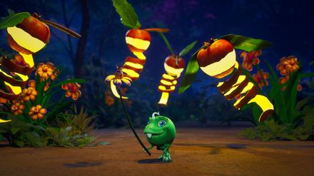 Das hat Ginger auch noch nicht erlebt - ein Pakchoidactylus, der sich nicht traut, im Dunkeln zu landen! Da muss Ginger das Unmögliche möglich machen und eine leuchtende Landebahn bauen. Ginger und die Erbs-Rexe teilen sich auf und suchen mitten in der Nacht nach Vegesauriern, die ein Licht erzeugen können oder selbst leuchten. Doch sie müssen sich beeilen, denn der Pakchoidactylus am Nachthimmel wird immer müder.