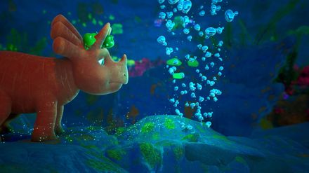 Der See im Vegesaurier-Tal ist ungewöhnlich warm - und er blubbert sogar. Dieses Blubberbad wollen sich Ginger und die Erbs-Rexe nicht entgehen lassen. Aber warum blubbert der See? Das Trikarottops-Mädchen Ginger taucht hinab auf den Grund des Sees und findet ein Loch, aus dem es heiß heraus blubbert. Wenn also der See nicht noch wärmer werden soll, dann muss Ginger das Loch wieder verschließen.