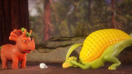 Frische Kartoffelchips: Nach dem Bad in heißen Quellen kleben auf den Rücken der Kartofflodons leckere Salzstückchen. Ginger und die Erbs-Rexe würden nichts lieber tun, als Salz zu schlecken. Ein Plan wäre gut! Denn die Kartofflodons sind mürrische Vegesaurier und wollen nicht, dass sich andere Vegesaurier ihnen nähern. Also verkleiden sich Ginger und ihre Erbs-Rex-Freunde als Kartofflodon. Ob das ein guter Plan ist? Verräterisches Popcorn: Ginger möchte einen kleinen Kornosaurolofus zu seiner Herde zurück bringen. Leider geht das nicht unauffällig, denn der Saurier verliert unterwegs unwiderstehlich duftendes Popcorn! Und wenn es nach Popcorn duftet, dann sind die fiesen Bananaraptoren nicht weit. Jetzt braucht Ginger einen Plan, wie sie die gierigen Bananaraptoren ablenken kann.