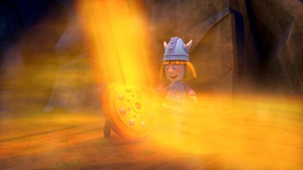 Der Donnergott: Der schreckliche Sven glaubt schon, den Wikingern ihre Beute abgeluchst zu haben. Doch er wird ein ordentliches Wunder erleben! Wickie hat nämlich bei einem Chinesen etwas eingekauft, das Sven die Haare zu Berge stehen lässt. Halvars Drachenboot ist bis zum Rand mit Waren beladen, und nichts mehr steht einer erfolgreichen Rückkehr nach Flake im Weg. Doch die Wikinger haben ein Problem, von dem sie noch gar nichts wissen: Sven ist ihnen auf den Fersen! Und dann geraten sie mit ihrem Schiff auch noch so unglücklich auf ein Riff, dass sie sich weder vorwärts noch rückwärts bewegen können. Sven und seine Männer wären nicht die schlimmsten Piraten der Meere, wenn sie eine solche Gelegenheit nicht erbarmungslos für sich ausnutzen würden. Sie berau-ben die Wikinger ihrer gesamten Ladung und lassen sie ohne Hilfe auf dem Riff sitzen. An Wickies Schlauheit allerdings denken sie nicht, und Wickie ist keineswegs bereit, die Piraten tatenlos als Sieger davon segeln zu sehen. Hat er nicht im letzten Hafen ein paar vielver-sprechende Bambusrohre von einem Chinesen gekauft? Und könnten diese Rohre nicht dabei helfen, himmelhoch den rachedurstigen Donnergott vor Sven erscheinen und ihm einen gehörigen Schreck einjagen zu lassen? Das Höhlenmonster: Der königliche Steuereintreiber ist in Wahrheit ein selbstsüchtiger Gierschlund. Und genau so einem wird Wickie den Schneid abkaufen, dass es dem Herrn Angst und Bange werden und er unsere Wikinger schleunigst in Ruhe lassen wird. Einen ganzen Berg von Goldmünzen, Schmuck und Diamanten haben die Wikinger im Laufe der Jahre angehäuft. Einen richtigen Schatz! Und weil es viel Arbeit gemacht hat, solche Reichtümer aufzutürmen, wollen sie sich diese auf keinen Fall vom gierigen Steuereintreiber des Königs abnehmen lassen. Doch der Eintreiber ist nicht auf den Kopf gefallen. Er lässt sich keineswegs mit ein paar Almosen abspeisen.