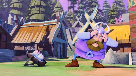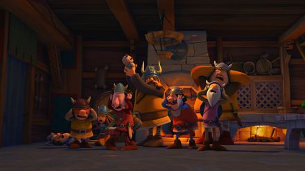 Natürlich kann Halvar es gar nicht verkraften, dass Baltak, der Chef des Nachbardorfes, ihn beim Armdrücken besiegt hat. Wütend fordert er den Gegner zu einem erneuten Zweikampf. Während Halvar trainiert, bringt Tjures Frau einen Sohn zur Welt. Der beginnt augenblicklich so laut zu brüllen, dass es die Wikinger auf die Knie zwingt und sie sich die Ohren zustopfen müssen. Schöne Aussichten - an Training ist nicht mehr zu denken.
