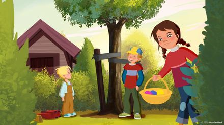 Wir suchen Ostereier: In Taras Garten haben Mama und Papa zu Osten eine Menge Süßigkeiten versteckt. Komisch ist nur, dass auch der Vorgarten voll mit Leckereien ist. War das vielleicht der Osterhase persönlich? Irgendwer muss es jedenfalls mit den Kindern im Möwenweg sehr gut gemeint haben. Sie alle nämlich finden vor dem Haus Extra-Schokoeier und Schokohasen. Entweder, es gibt den Osterhasen wirklich oder einer der Nachbarn hat da über Nacht etwas Süßes versteckt. Tara, Petja und Maus stellen den Garten auf den Kopf. Sie suchen Ostereier und Schoko-Osterhasen, die die Eltern dort überall versteckt haben. Und weil Mama und Papa auch etwas vom Fest haben sollen, warten auf sie im Wohnzimmer ebenfalls ein paar Überraschungen. Maus allerdings genügt das alles längst noch nicht. Er beschließt, vor der Haustür weiter zu suchen. Und tatsächlich! Im kleinen Vorgarten liegen eine ganze Menge österlicher Süßigkeiten versteckt, so viele, dass sie eigentlich für alle drei Kinder der Johannsons reichen müssten. Mehr noch - auch in allen anderen Vorgärten des Möwenweges hat offenbar der Osterhase höchstpersönlich Geschenke hinterlassen. Kann das sein? Oder hat etwas das wilde Häschen etwas damit zu tun, das gerade über die Straße hoppelt? Oder Opa Kleefeld? Herrn Voisin, der sich nicht mal die Namen der Kinder merken kann, wird wohl kaum einer zutrauen, dass er Ostergeschenke verteilt.